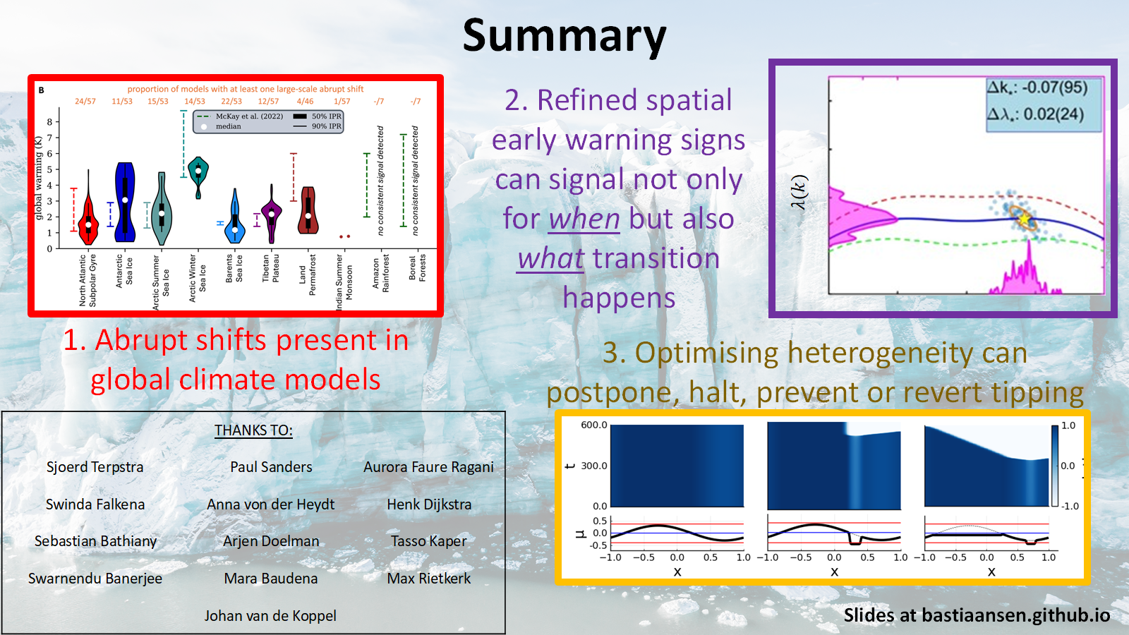 | 2022-... | Sjoerd Terpstra | Theory of coupled climate tipping elements (main supervisor: Anna von der Heydt; other promotor: Henk Dijkstra) |